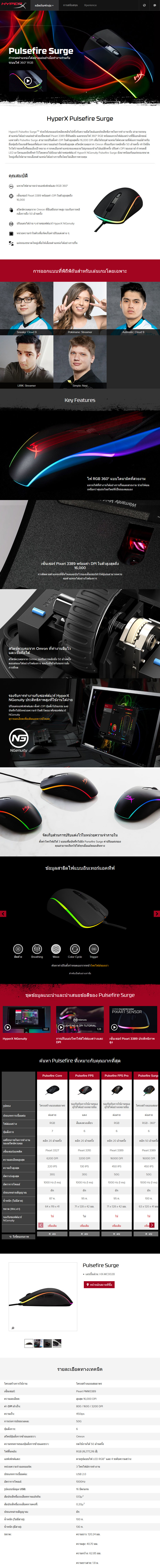 สวัสดีครับ กลับมาพบกับบทความจากหน้าเว็บไซด์ Vmodtech กันอีกครั้งนึง วันนี้เราได้รับเมาส์รุ่นใหม่จากค่าย Kingston ในซีรีย์ HyperX มารีวิวให้ชมกันครับ สำหรับ HyperX Pulsefire Surge นั้นเป็นเมาส์ที่มีจุดเด่นที่ไฟที่เรืองแสงที่สามารถปรับแต่งได้ครอบคลุม RGB เลยครับผ่านทางซ๊อฟแวร์ HyperX NGenuity ตัวเซนเซอร์นั้นมี DPI สูงสุดถึง 16,000 เรียกว่าปรับได้เหมาะสมกับขนาด resolution 4K ที่กำลังกลายเป็นเรสโซลูชั่นมาตรฐานไปแล้ว สวิทซ์ที่เลือกใช้นั้นจะเป็น Omron คุณภาพสูง เรามาชมรายละเอียดของตัว HyperX Pulsefire Surge กันเลย