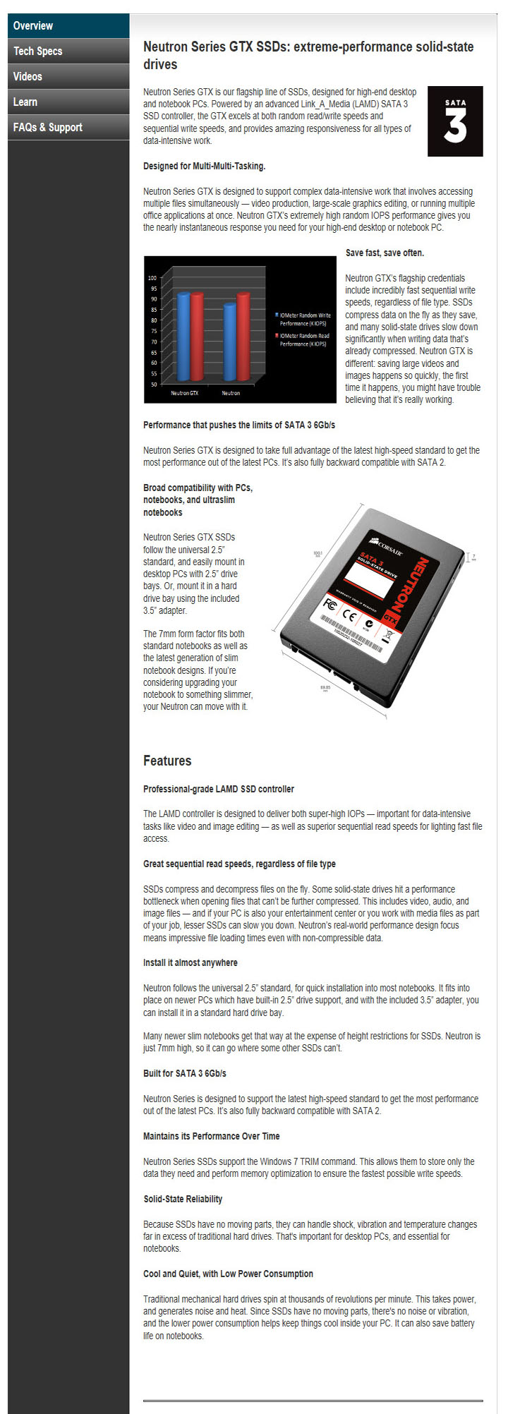 Corsair Neutron Serie™ GTX 120GB SATA 3 6Gb/s SSD