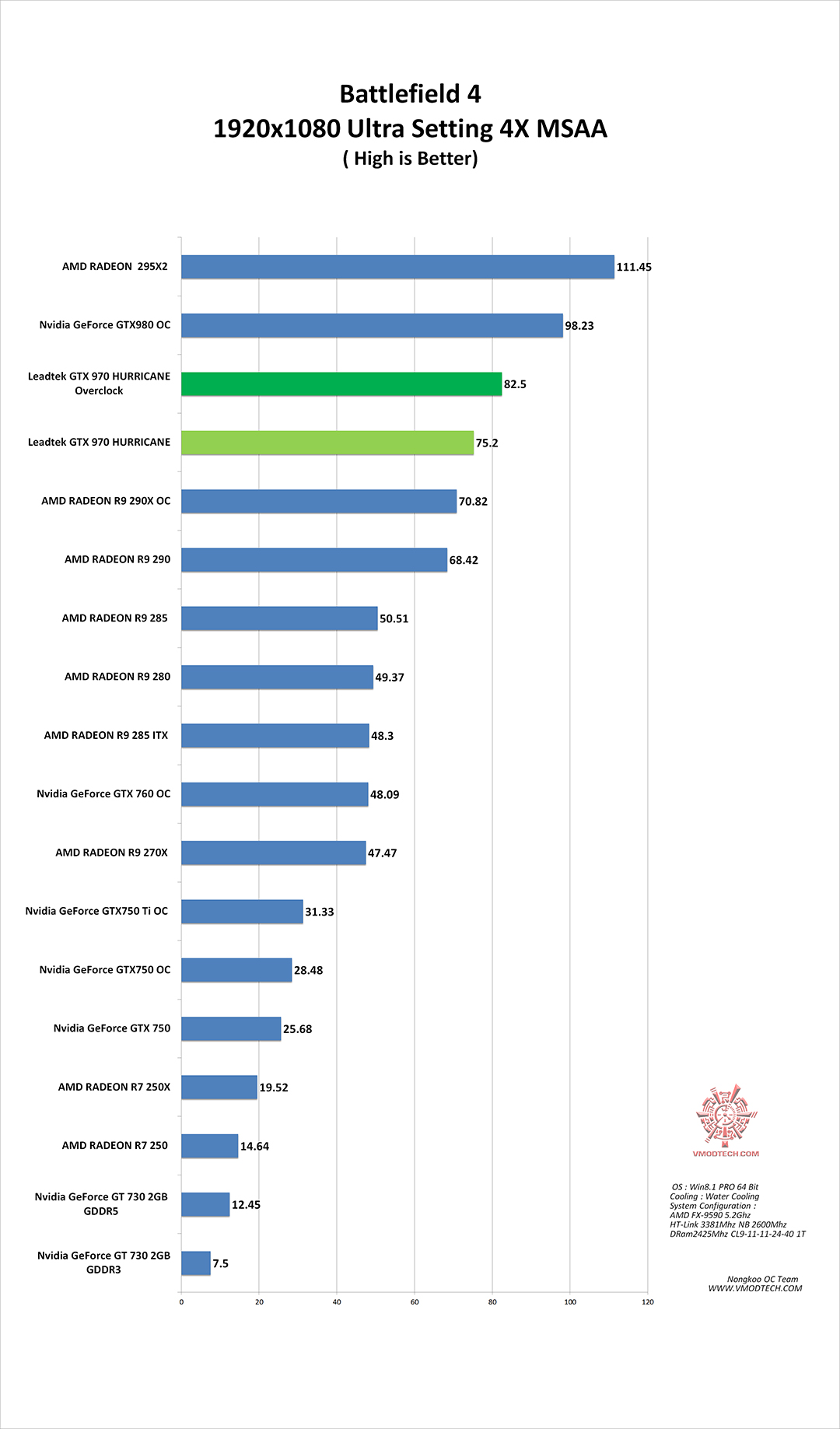 Battlefield 4™ คือเกมแอ็คชันสุดฮิตที่ขึ้นชื่อเรื่องการทำลายที่ไร้คู่แข่ง ด้วยพลังขับเคลื่อนและความสมจริงของเอนจินยุคต่อไปอย่าง Frostbite™ 3 ซึ่งตัวเกมส์เน้นการเล่นออนไลน์เป็นหลักรวมไปถึงออฟไลน์ก็สามารถใช้งานได้ดี เช่นกันกับกราฟฟิกที่สวยงามและกินเสปกมากเกมส์หนึ่งเลยทีเดียว โดยการทดสอบของทาง Vmodtech.com ได้ปรับความละเอียดที่ 1920×1080P คุณภาพของภาพอยู่ที่ระดับ Ultra High ครับ