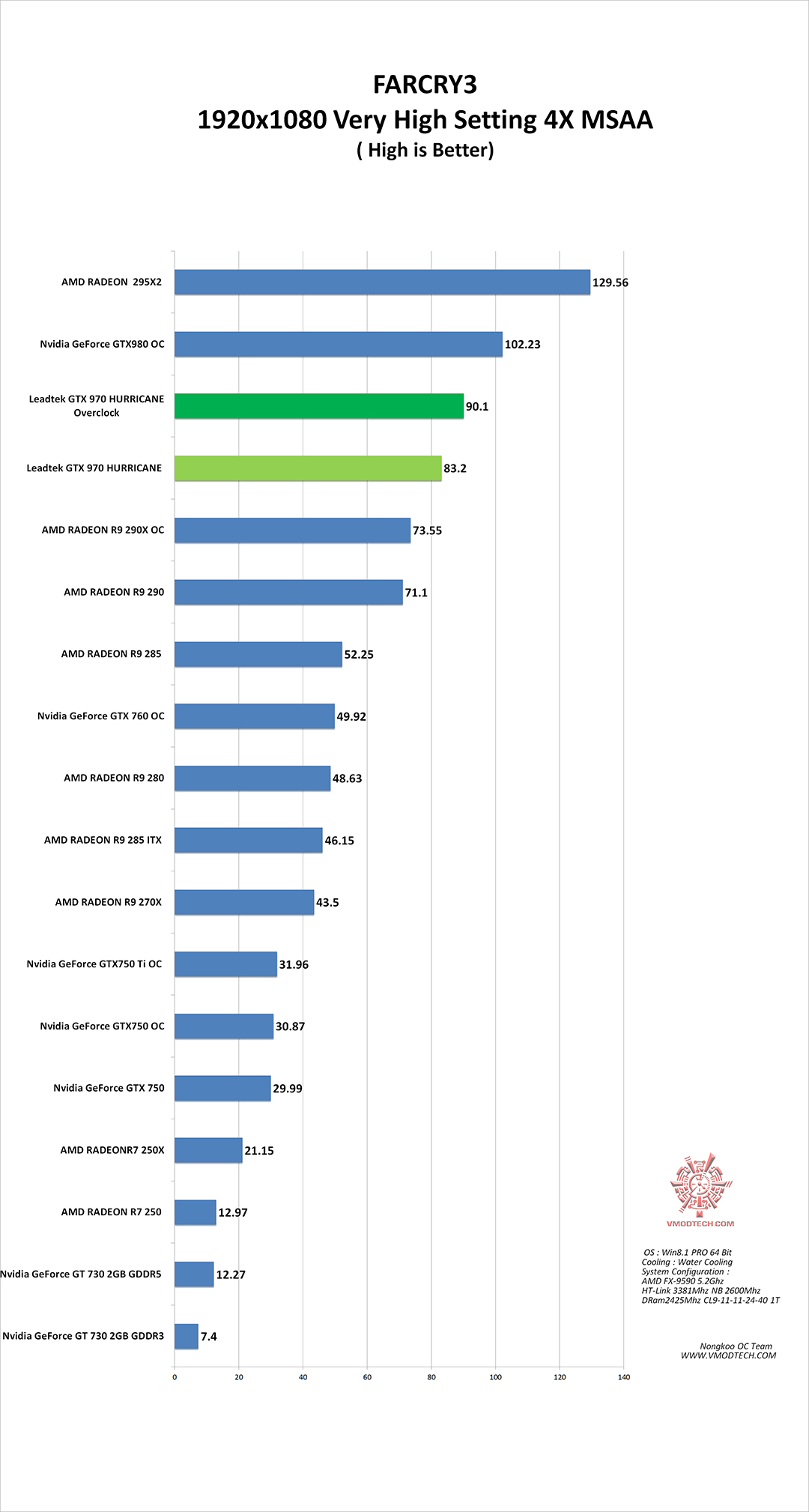 FARCRY3 ความละเอียด 1920X108 Very High MSAA 4X เฟรมเรตอยู่ที่ 190เฟรมเรต