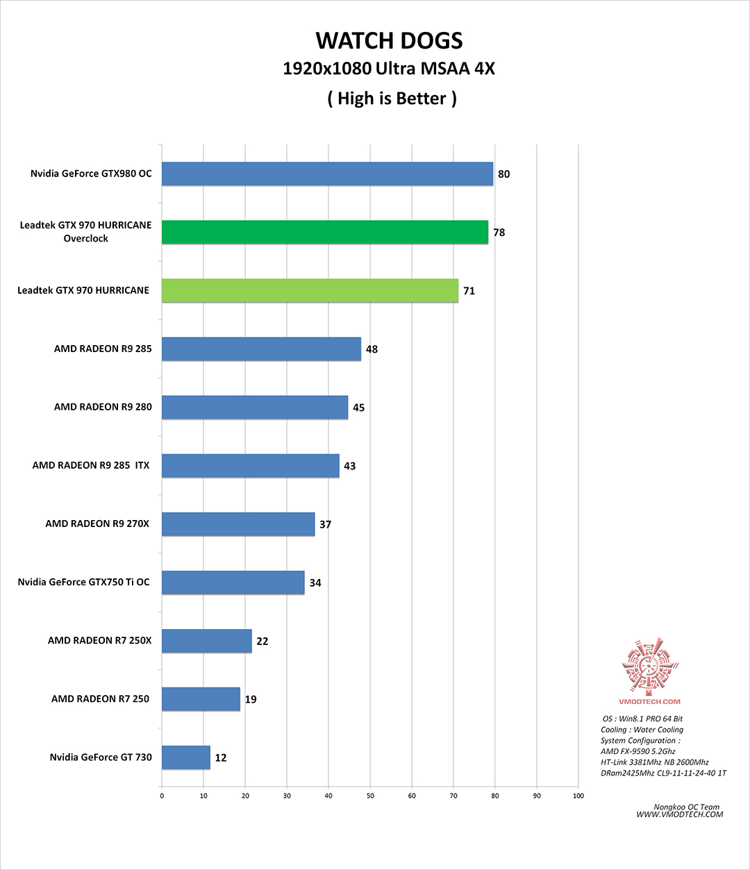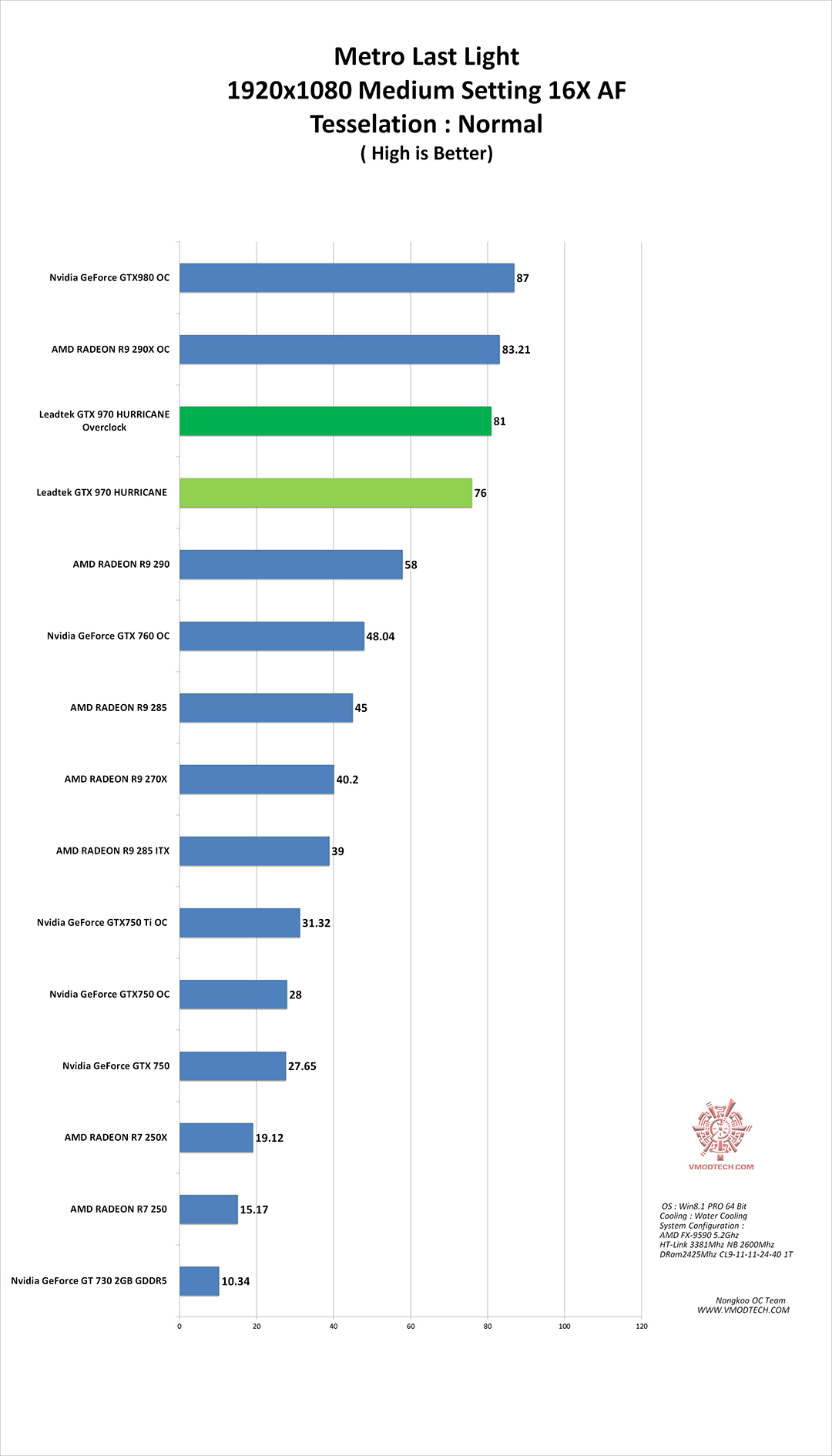 ก็มาถึงช่วงท้ายกันครับสำหรับการทดสอบ Leadtek GTX 970 HURRICANE ที่วันนี้ทำประสิทธิภาพความแรงได้แบบเต็มประสิทธิภาพทั้งในสถานะเดิมๆและโอเวอร์คล๊อกโดยโอเวอร์คล๊อกใช้งานกันแบบเต็มๆที่ Core 1231Mhz Memory 2003Mhz Boost 1371Mhz ส่วน GPU Boost นั้นจะอยู่ที่ 1420Mhz ตลอดการทดสอบอีกทั้งยังกดกันแบบเต็มๆที่ความเร็ว Core 1320Mhz Memory 2101Mhz Boost 1460Mhz กันแบบเต็มๆ โดย GPU Boost ก็จะวิ่งสูงสุดอยู่ที่ 1534Mhz กัน แบบเต็มๆเรียกได้ว่าโอเวอร์คล๊อกกันได้แบบนิ่งๆอย่างมีเสถียรภาพตลอดการทดสอบ กับประสิทธิภาพความแรงที่ทำออกมาได้ดีครับด้วยดีไซน์ที่ดูเรียบง่ายสวยงามเน้นความคงทนของวัสดุ ส่วนเรื่องอุณหภูมิก็ถือว่าเย็นดีมากครับโดยฟูลโหลดแค่ 58องศาฯเท่านั้นส่วนเสียงรบกวนนี้ไม่เป็นปัญหาเท่าใดครับถ้าไม่เปิดพัดลมเต็ม 100เปอร์เซ็น ถือเป็นกราฟฟิกการ์ดที่พัฒนาต่อยอดจากการ์ด Ref. ของทาง WinFast นั่นเองครับที่เพิ่มฮีตซิงค์ระบายความร้อนอย่างระบบ HURRICANE เข้าไปรวมไปถึงเพิ่มความแรงในการโอเวอร์คล๊อกอีกด้วยนั่นเองครับ โดยราคาวางจำหน่ายในไทยก็ตกอยู่อยู่ราวๆ 14XXXบาทครับ สำหรับในวันนี้กระผมก็ขอตัวลาไปก่อน พบกันใหม่เร็วๆนี้กับรีวิวอุปกรณ์ใหม่ๆจัดเต็มทุกการทดสอบที่ Vmodtech.com สวัสดีครับ