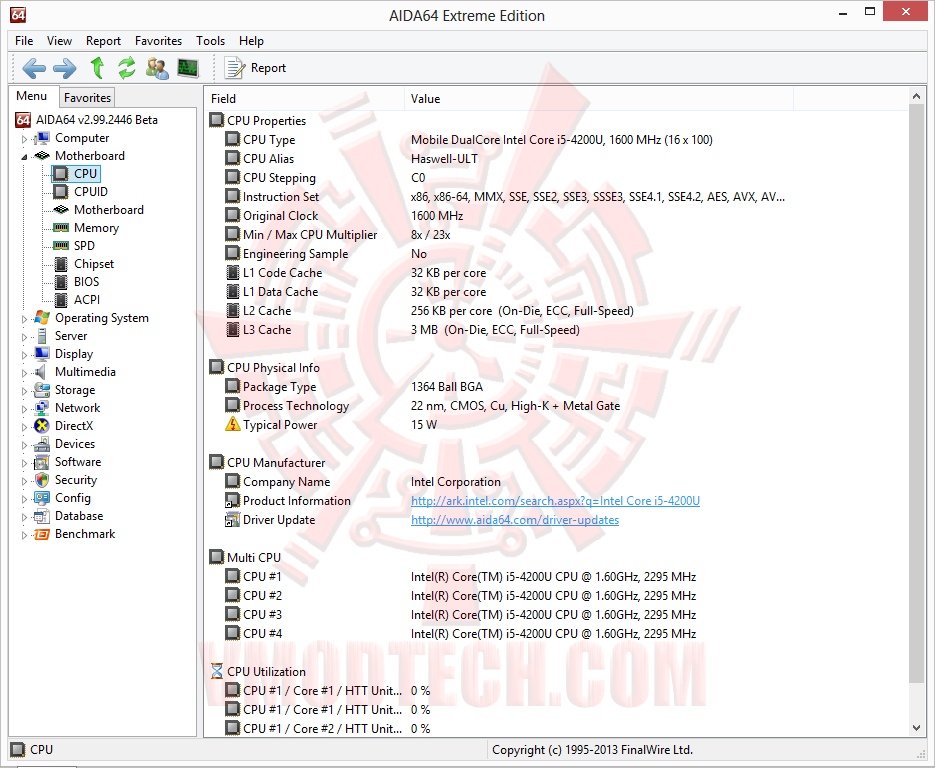- Processor 4th Gen Intel® Core™ i5-4200U (1.60GHz 1600MHz 3MB)