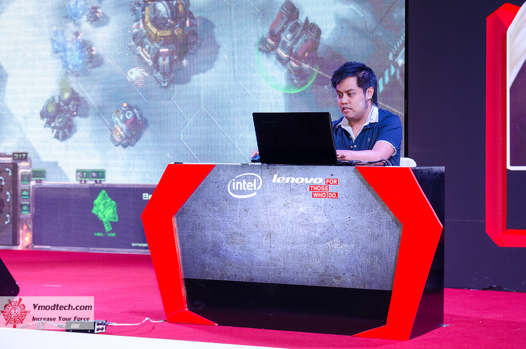 บรรยากาศในงานก็ใช้แชมป์ของเราทดลองเล่นเกมส์ StarCraft II ผ่านเครื่อง Lenovo Y510p ครับ