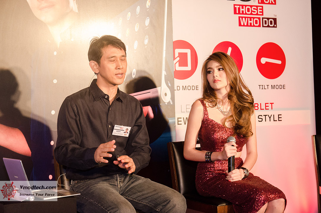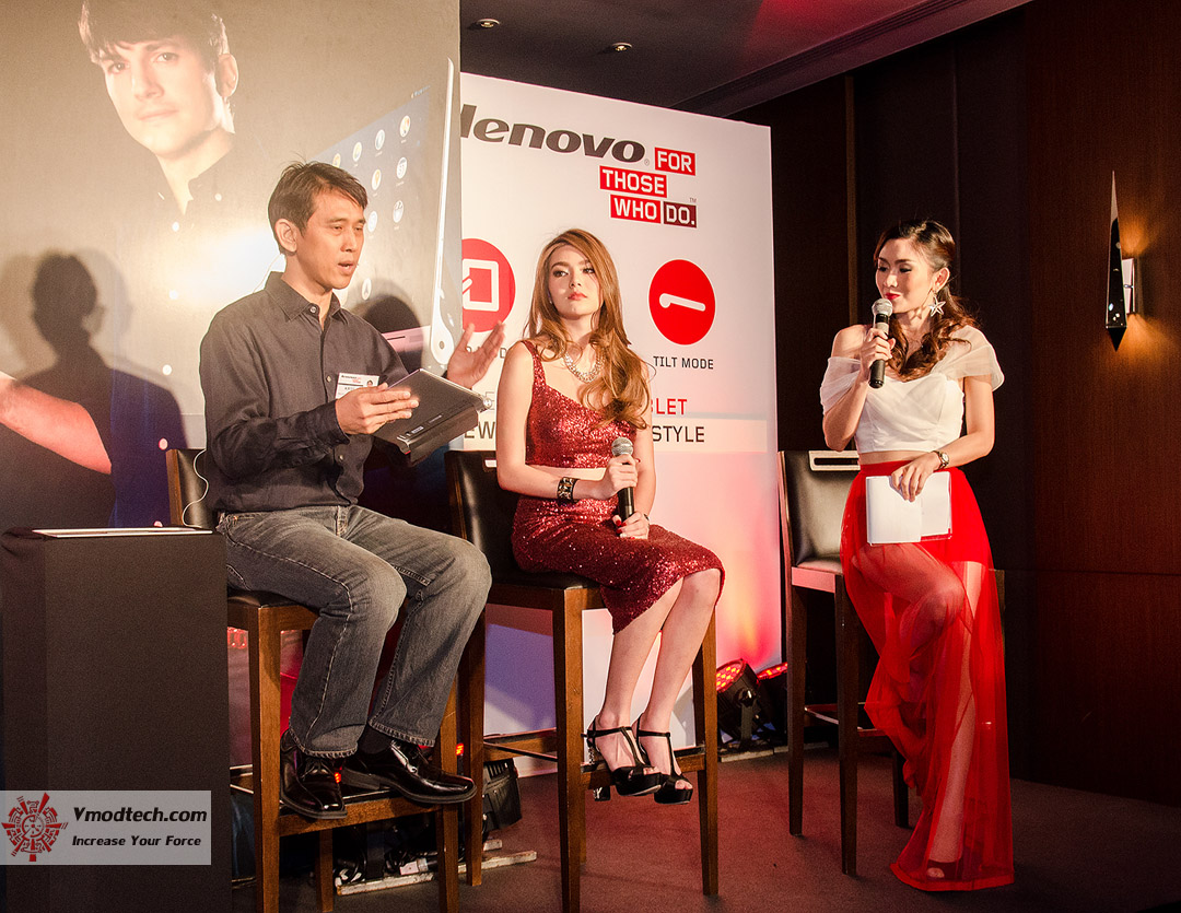 ……….นายจีรวุฒิ วงศ์พิมลพร กรรมการผู้จัดการ เลอโนโว ประเทศไทยกล่าวว่า “จากการสังเกตุพฤติกรรมการใช้งานแท็บเล็ตของผู้บริโภคเราพบว่าการใช้งานโดยปกติจะแบ่งออกเป็นสามลักษณะที่เห็นได้เป็นประจำซึ่งทำให้เราเกิดแนวคิดใหม่ในการดีไซน์แท็บเล็ตเลอโนโวให้ฉีกทุกรูปแบบการดีไซน์ที่เคยมี เพื่อเป็นทางเลือกใหม่สำหรับการใช้แท็บเล็ตในชีวิตประจำวันทีครอบคลุมทุกกิจกรรม ไม่ว่าจะเป็นการใช้แท็บเล็ตเพื่อการอ่านหนังสือ เพื่อท่องเว็ปไซต์ หรือแม้แต่การใช้เพื่อดูและอินเตอร์แอคทีฟกับคอนเทนต์ต่างๆในอินเตอร์เน็ต กลุ่มผู้บริโภคในไทยนั้นยังคงต้องการอุปกรณ์ไอทีที่สามารถพกพาไปได้ทุกที่ อย่างเช่น แท็บเล็ตและสมาร์ทโฟน เลอโนโวจึงได้พัฒนานวัตกรรมการออกแบบแบบมัลติโหมด ที่จะเปิดประสบการณ์ใหม่ให้กับผู้ใช้งานอย่างที่ไม่เคยมีมาก่อน”