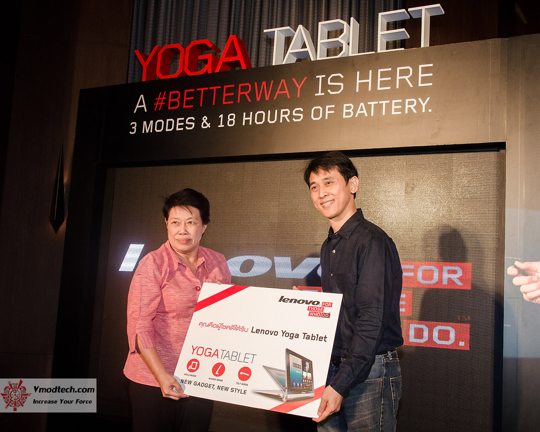 มาต่อช่วงต่อไปกันเลยครับ คุณกฤษณ์ กิตติทัตต์ ผู้จัดการประจำประเทศไทยฝ่ายผลิตภัณฑ์คอนซูมเมอร์เลอโนโวประเทศไทย ขึ้นเวทีมาให้ข้อมูลเชิงลึกของเจ้า Lenovo Yoga Tablet ทีเด็ดนี้คือใช้งานได้ 3 โหมด และแบตอึด 18 ชั่วโมง ไปชมรายละเอียดกันเลยครับ