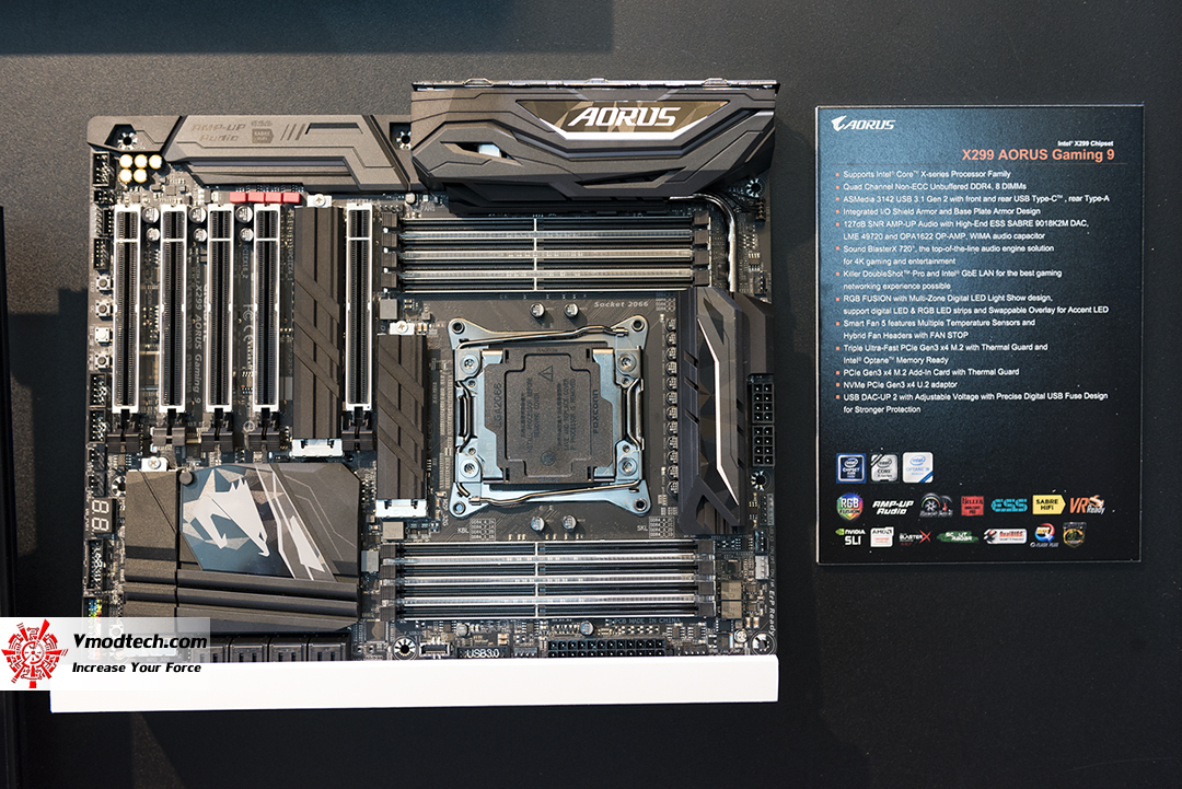 สำหรับมาเธอร์บอร์ด X299 AORUS Gaming 9 นั้นสามารถเสียบใช้งาน SSD แบบ PCIe ได้พร้อมกัน 4 ตัว ซึ่งมันสามารถคอนฟิกให้ใช้งานแบบ RAID 0 ด้วย ซึ่งมันจะช่วยให้ความเร็วในการอ่านสูงขึ้นไปถึงเกือบๆ 10,000 MB/s เลยทีเดียวครับ