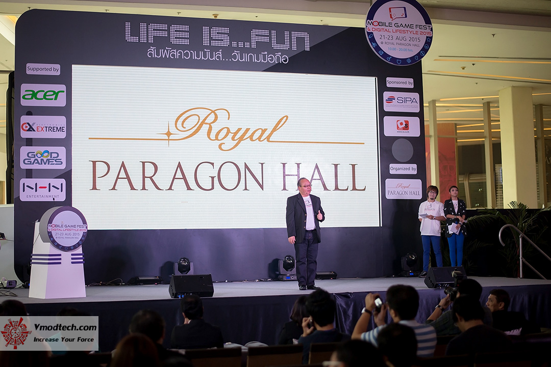 ………คุณทาลูน เทง กรรมการผู้จัดการ รอยัล พารากอน ฮอลล์ กล่าวว่า “งาน MOBILE GAME FEST & DIGITAL LIFESTYLE 2015 ภายใต้คอนเซ็ปต์ “LIFE IS FUN สัมผัสความมันส์ วันเกมมือถือ” ที่จัดขึ้นในครั้งนี้ถือเป็นงานใหญ่ครั้งแรกในวงการเกมมือถือเพื่อตอกย้ำจุดยืนการเป็นผู้จัดงานอันเป็นเอกลักษณ์ หรือ Iconic Event ที่ตอบสนองInnovative Lifestyle ของคนรุ่นใหม่โดยตระหนักถึงกระแสนิยมการใช้สมาร์ทโฟนและแท๊บเล็ตที่มีการขยายตัวอย่างต่อเนื่อง ตลอดจนการเติบโตของตลาดเกมมือถืออย่างเห็นได้ชัดในช่วง 2 ปีที่ผ่านมา ซึ่งในงานได้รวบรวมเทคโนโลยีใหม่ๆเกี่ยวกับเกมมือถือ แอพพลิเคชั่นบนมือถือ พร้อมข้อมูลความรู้ในอุตสาหกรรมดิจิตอลคอนเท้นท์ไทย และกิจกรรมจากค่ายเกมอีกมากมาย เพื่อมุ่งหวังให้งานนี้เป็นอีกหนึ่ง คอมมูนิตี้สำหรับเหล่าเกมเมอร์ และผู้สร้างดิจิตอลคอนเท้นท์ไทย โดยคาดหวังให้ผู้เข้าร่วมงานสามารถนำความรู้ไปต่อยอดทางด้านความคิดสร้างสรรค์ในสายงานด้านเกม และ ดิจิตอลคอนเท้นท์ ได้ พร้อมผลักดันอุตสาหกรรมเกมมือถือสู่ระดับสากล ซึ่งคาดว่าจะมีผู้ให้ความสนใจเข้าร่วมงานกว่า 60,000 คน”