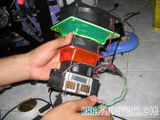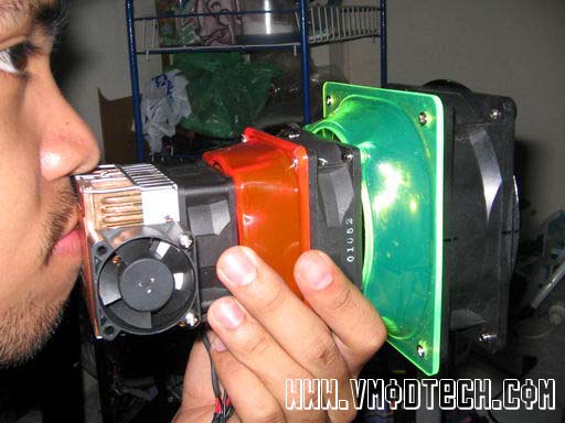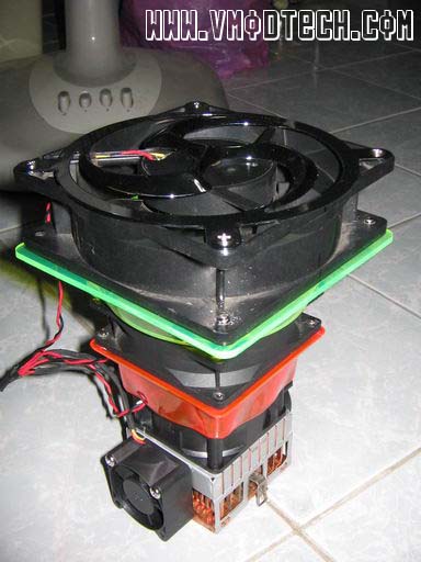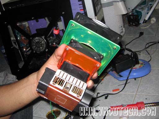 1.พัดลมขนาด40มม.ความเร็ว8000RPM. จำนวน2ตัวประกบด้านข้างของฮีตซิ้งค์ตัวนึงดูดเข้าตัวนึงเป่าออก