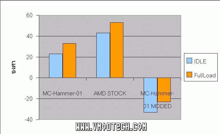 ปล. เพิ่มเติมนะครับ มีบางคนอ่านไม่ดีนึกว่าผลทดสอบติดลบเป็นเรื่องจริง จริงๆไม่ใช่นะครับ แหกตาครับ เพราะพวกผมไม่มีMainboard Socket A ทดสอบ เลยไม่ได้ทดสอบผลจริงๆมาลง เลยทำกราฟมามั่วๆมากะเอาฮา เป็นกราฟแหกตา อย่าเชื่อกันนะคร้าบ