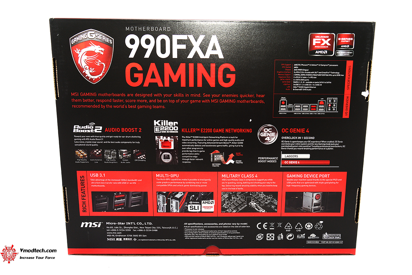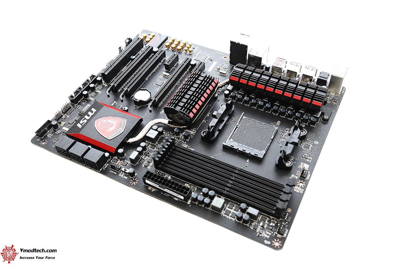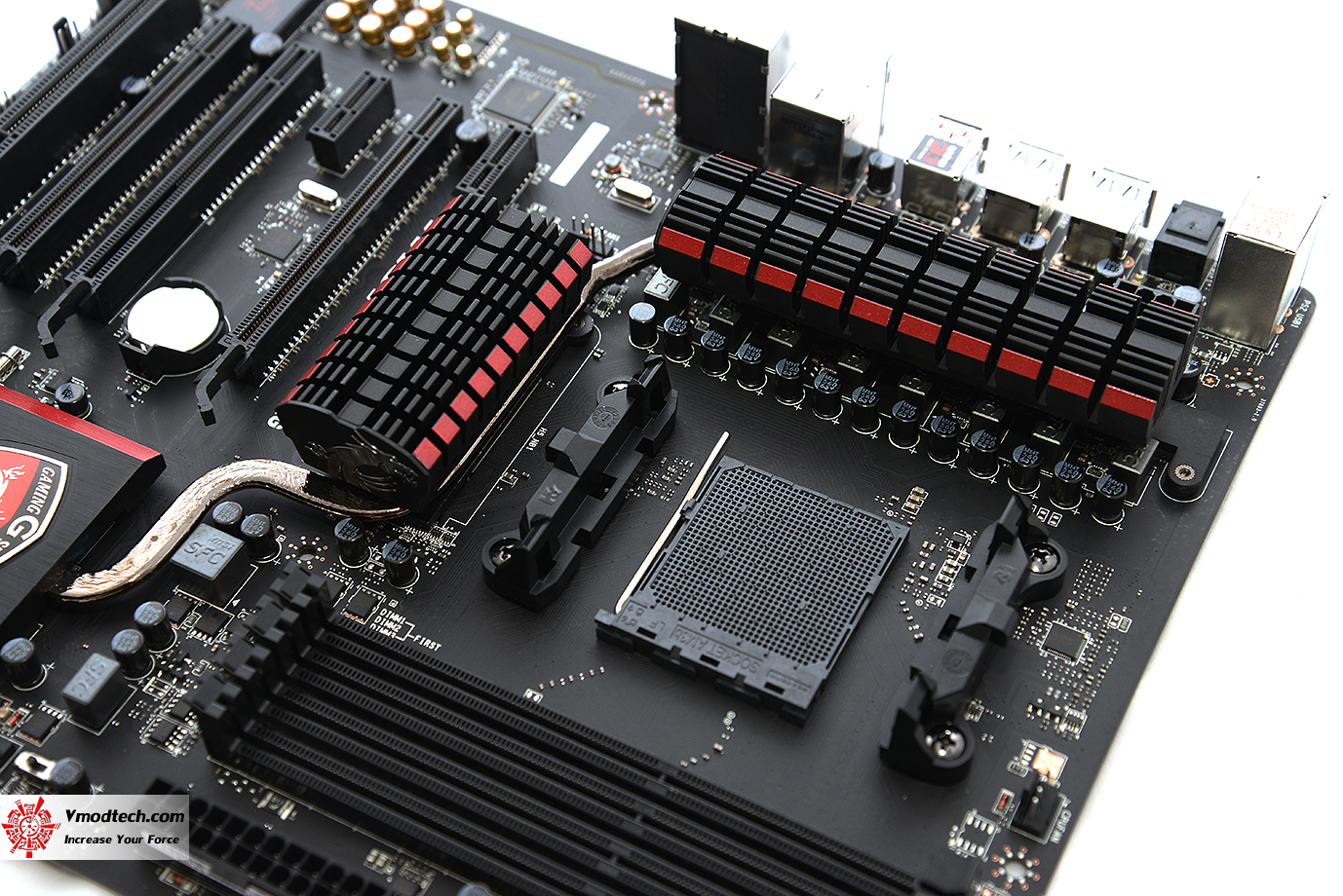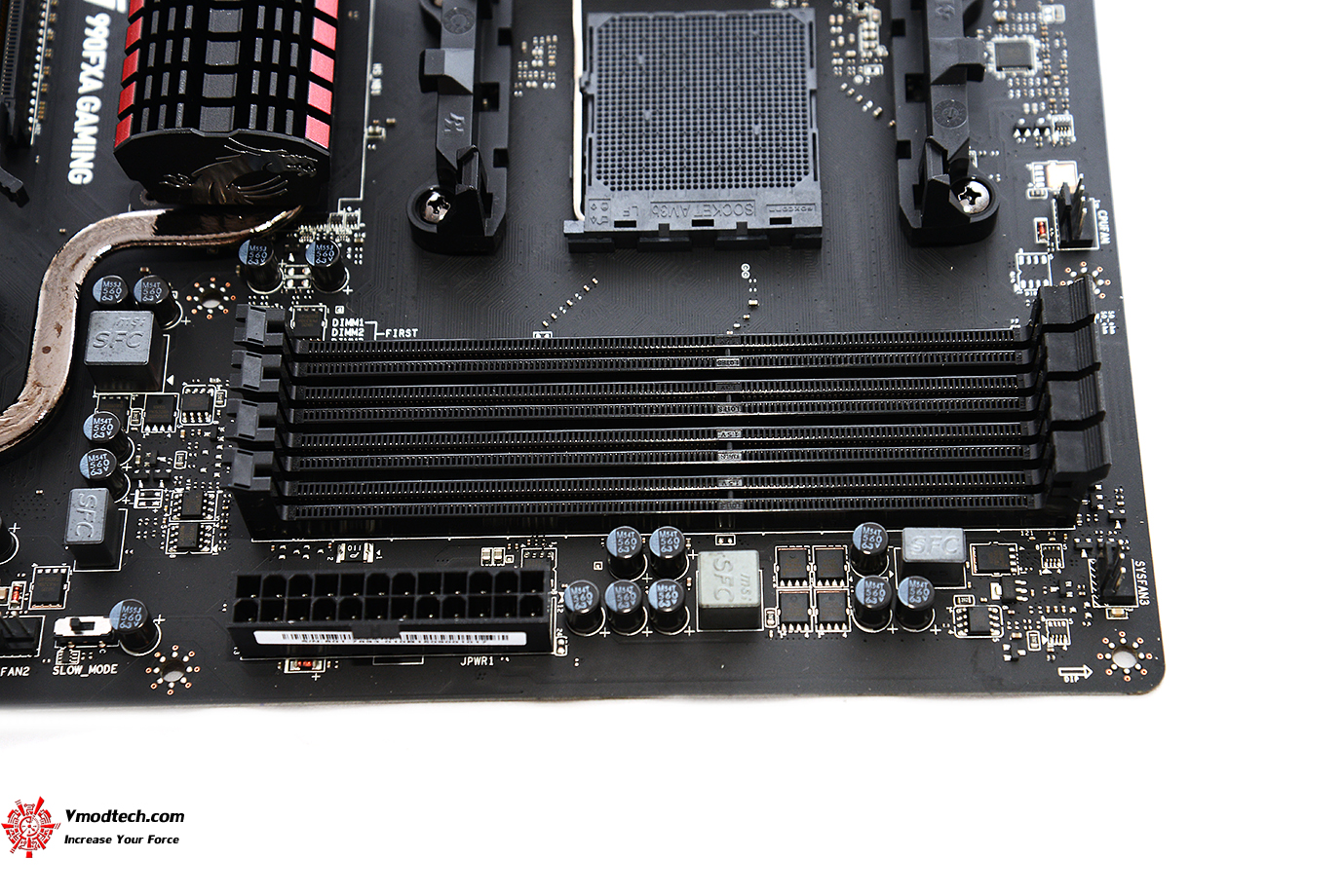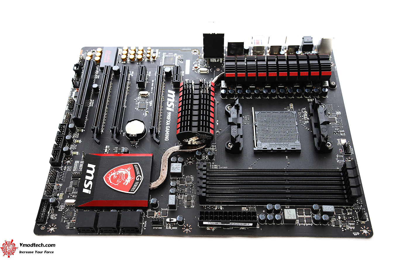 เฟสไฟมี ด้วยกัน 8 เฟสด้วยกันกับมาตรฐาน SFC ( Super Ferrite Chokes) และคาปาซิเตอร์ Dark CAP เกรดเยี่ยมให้แบบครบๆเลยครับ ด้านบนมีฮีตซิงค์อลูมิเนียมสีแดงทั้งสองฝั่งครับ ซ๊อกเก็ตที่ใช้งานเป็น AM3+ รองรับซีพียู Supports AMD® FX™/ Phenom™ II/ Athlon™ II and Sempron™ processors for the AM3/ AM3+ socket ตามลำดับ