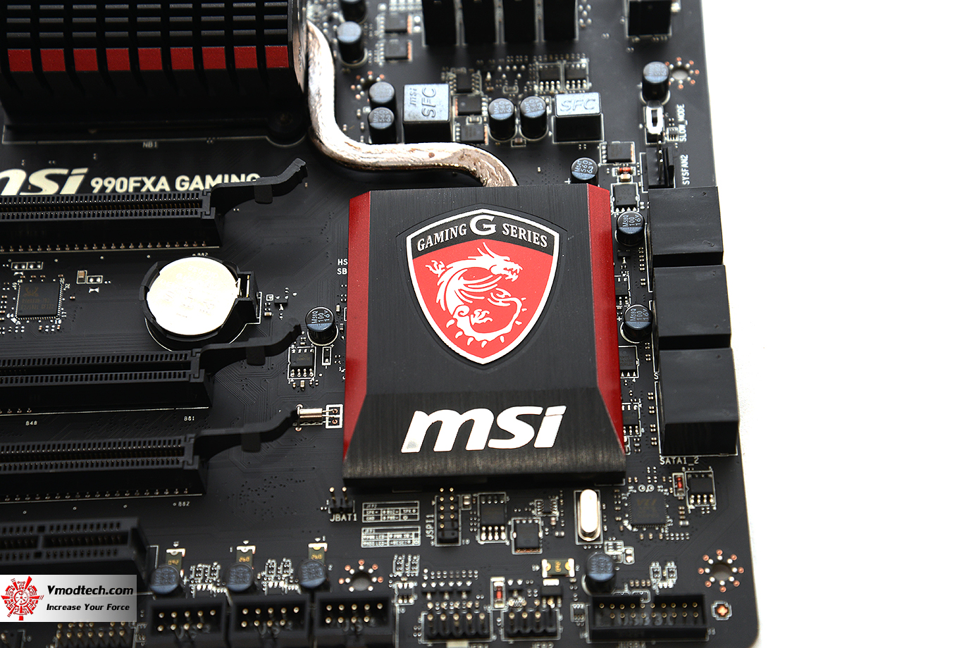 ฮีตซิงค์ชิบเซ็ต AMD® 990FX & SB950 ดีไซน์สีดำสนิทมีโลโก้ MSI GAING ชัดเจนครับ