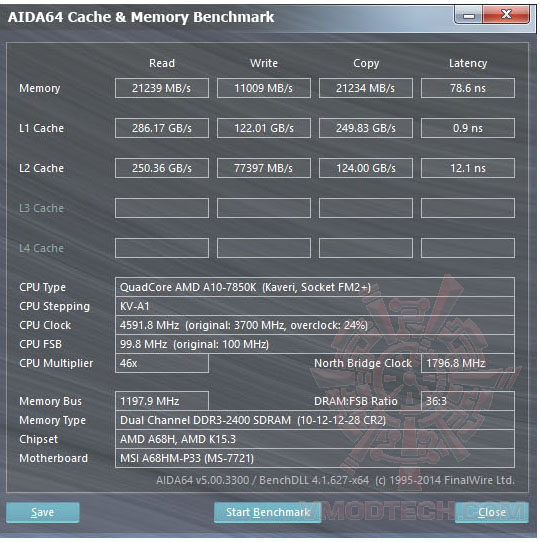 วันนี้ทดสอบกันในแบบโอเวอร์คล๊อกกันแบบไม่ต้องปรับจุดไฟเลี้ยงเพิ่มเลยสักจุดครับเพราะตัวเมนบอร์ดไม่มีจุดให้ปรับไฟเลี้ยงเลยสักจุดยกเว้นในส่วนของแรม ส่วนบรรดาค่าตัวคูณบัสแรมต่างๆและ APU สามารถปรับแต่งได้ตามปกติครับ แม้จะไม่มีจุดปรับเพิ่มไฟเลี้ยงแต่วันนี้ผมก็ลองโอเวอร์คล๊อกดูมาหยุดที่ความเร็วที่ 4.6Ghz ไฟเลี้ยงซีพียู Vcore 1.43V NB Frequency 1800 Mhz บัสแรม 2400Mhz CL10-12-12-28-44 2T 1.65V แบบใช้งานกันได้จริงๆอย่างมีเสถียรภาพ สำหรับค่ากราฟฟิก APU วันนี้แม้จะไม่มีไฟเลี้ยงเพิ่มก็ยังอัดกันได้ที่ความเร็ว Core 960Mhz Memory 1200Mhz กันแบบเต็มๆ เล่นกันได้อย่างสบายมีเสถียรภาพตลอดการทดสอบครับ ไม่ธรรมดาจริงๆ