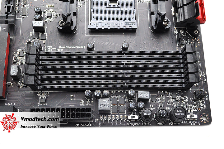 ปุ่มสวิตช์ใช้งาน Power , Reset , OC Genie มีให้เลือกใช้แบบสบายๆโดยเฉพาะปุ่ม OC Genie กดครั้งเดียวก็แรงได้แบบง่ายๆโดยเมนบอร์ดจะโอเวอร์คล๊อกให้เลยแบบอัตโนมัติครับผม