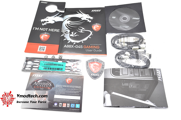 ภายในกล่องให้อุปกรณ์มาเยอะครับ แผ่นไดร์เวอร์ คู่มือ สายSATA 4เส้น ฝาหลัง แผ่นโลโก้ Gaming Series และโค๊ดเกมส์ Assassin’s Creed 4 Liberation HD ซึ่งผมเซ็นเซอร์ไว้เรียบร้อย อิอิ กำ (ไม่ได้ขูดเอานะครับ แปะโชว์รหัสเลย)