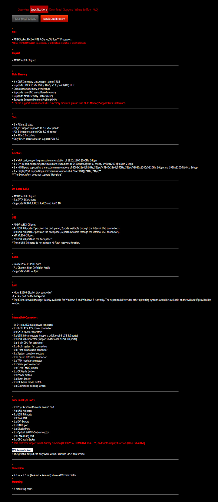 สวัสดีทุกท่านที่เยี่ยมชมเว็บไซต์ Vmodtech.com ในวันนี้เรามาชมรีวิวเมนบอร์ดของทาง AMD FM2+ ซึ่งเป็นเมนบอร์ดตัวที่ 7 ในการรีวิวของเว็บไซต์ของเราซึ่งในวันนี้เรายังคงอยู่กับแบรนด์ยี่ห้อดังอีกหนึ่งยี่ห้อนั่นก็คือ MSI ครับ โดยวันนี้มาในรุ่น GAMING SERIES กันอีกเช่นเคยซึ่งเราเคยรีวิวไปแล้วครั้งหนึ่งสำหรับในรุ่น GAMING SERIES แต่ในวันนี้จะเป็นรุ่นที่เล็กลงมาครับแต่ก็ยังคงเป็น GAMING SERIES กันอยู่มากันในชื่อรุ่นเต็มๆว่า MSI A88XM GAMING ซึ่งเป็นรุ่นที่เล็กลงมาหน่อยหรือพูดง่ายๆคือเป็นรุ่น MSI A88X-G45 GAMING ที่ย่อขนาดลงมาครับแต่บรรดาฟีเจอร์การทำงานนั้นเหมือนกันแทบทุกอย่างครับผมจะต่างกันที่ขนาดของเมนบอร์ดจะเป็นขนาด M-ATX ซึ่งเล็กลงมาเล็กน้อยเพียงเท่านั้น แต่ก็ยังคงฟีเจอร์หลักๆเอาไว้ตามแบบฉบับ GAMING SERIES ของทาง MSI ไว้ อาทิ ระบบ KILLER E2200 , ระบบเสียง AUDIO BOOST, ระบบ Military Class 4: Top Quality & Stability ก็ยังคงมีอยู่ใน MSI A88XM GAMING ตามมาตรฐานเช่นเดิม โดยส่วนของไบออสมีจุดที่แตกต่างรุ่นใหญ่ก็คือจะไม่มีจุดให้เพิ่มไฟ APU ครับแต่ระบบไฟต่างๆเหมือนกับในรุ่นใหญ่ทั้งหมดมีเพียงแค่จุดเดียวเท่านั้นที่ไม่มีให้ปรับและบรรดาสล๊อตเชื่อมต่อต่างๆก็จะไม่มากเท่ากับรุ่นใหญ่เพราะข้อจำกัดของพื้นที่ของเมนบอร์ดนั่นเอง เดี๋ยวเราไปชมกันครับว่าถึงขนาดเมนบอร์ดจะเล็กลงแต่ความสามารถนั้นจะมีมากขนาดไหนรับรองว่าไม่แพ้รุ่นใหญ่อย่างแน่นอน ก่อนอื่นไปชมรายละเอียดจากทางผู้ผลิตกันก่อนครับ