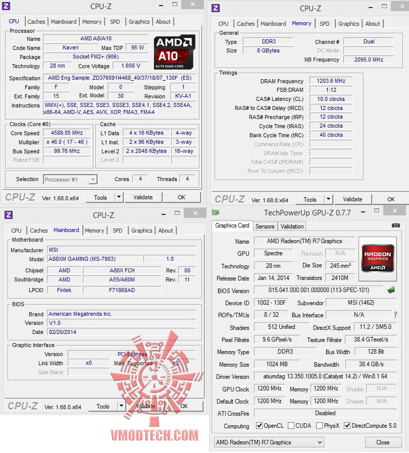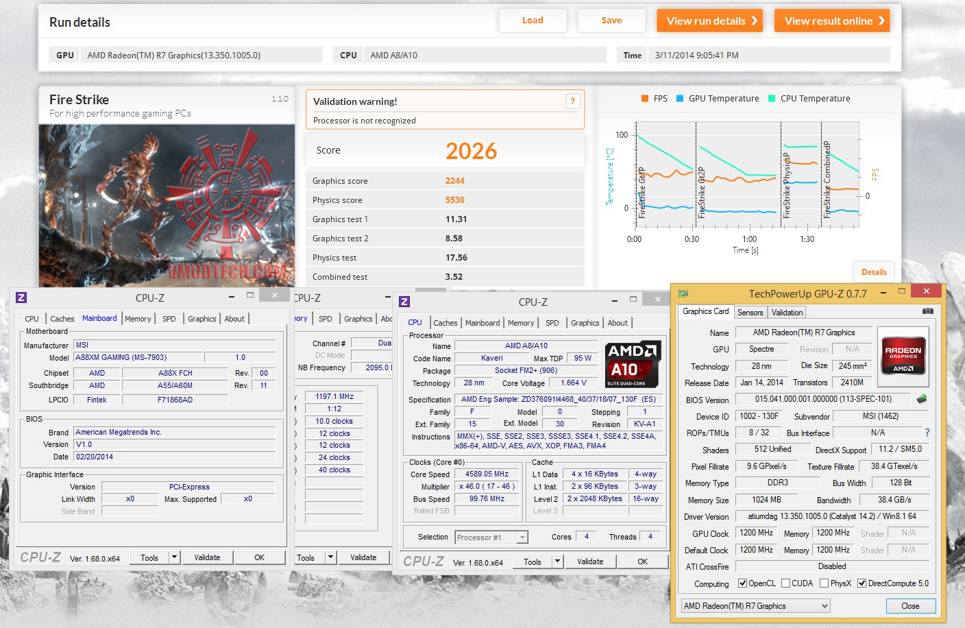 สำหรับค่ากราฟฟิกวันนี้สำหรับค่า GPU Clock ที่ผมบอกไว้ในช่วงต้นบทความว่าไม่มีจุดให้ปรับไฟเลี้ยงสำหรับเมนบอร์ดในรุ่นนี้ แต่มันก็ไม่ไช่ปัญหาครับถึงแม้จะไม่มีจุดให้เพิ่มไฟก็สามารถโอเวอร์คล๊อกกันได้แบบเต็มๆที่ความเร็ว GPU 1200Mhz Memory 1200Mhz กันแบบเต็มๆตลอดการทดสอบแบบนิ่งๆเสถียรๆกันเลยทีเดียวครับ โดยเท่ากับรีวิว MSI A88X-G45 GAMING Limited Edition ซึ่งเคยทดสอบไปแล้วเลยทีเดียว ซึ่งค่าเดิมๆของ APU ที่เป็นค่า Default จะอยู่ที่ 720Mhz สำหรับค่า IGPU (APU) ของซีพียูตระกูล Kaveri ถือว่าอัดได้ไกลกว่าเดิมเยอะครับเมื่อเทียบสัดส่วนที่ทดสอบกันในวันนี้โดยแบบไม่เพิ่มไฟเลี้ยง