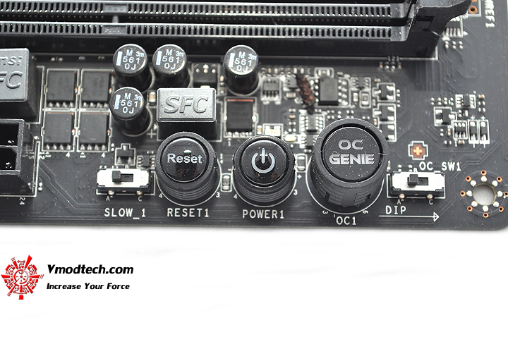 ปุ่มสวิตช์ใช้ งาน Power , Reset , OC Genie มีให้เลือกใช้แบบสบายๆโดยเฉพาะปุ่ม OC Genie กดครั้งเดียวก็แรงได้แบบง่ายๆโดยเมนบอร์ดจะโอเวอร์คล๊อกให้เลยแบบอัตโนมัติ ครับผม