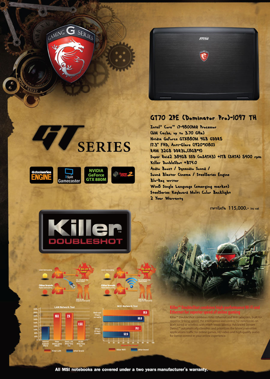รุ่นเทพที่ใช้ GPU รุ่นใหม่ล่าสุดจาก NVIDIA ในตระกูล GeForce GTX 800M ก็มีมาโชว์พลังด้วยครับ