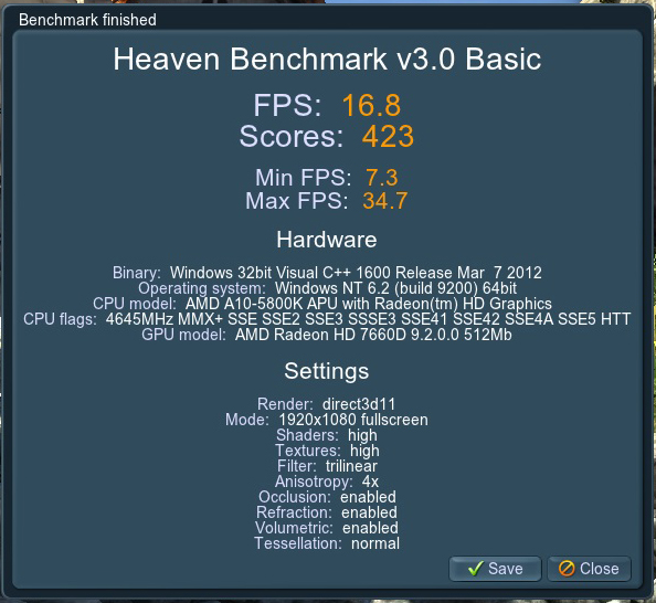 Heaven Benchmark 3.0 ปรับ High หมด ยกเว้น Tessellation Normal ปิด AA ก็สามารถรันผ่านพ้นไปได้ครับผม