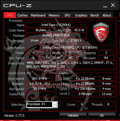 CPU ที่ใช้จะเป็นตัวยอดนิยมครับคือ Intel Core i7 6700HQ 4 Core 8 Thread มีแรมแบบ DDR4 มาให้ 1 แถวขนาด 8 กิ๊กกะไบท์ทำงานแบบ Single Channel