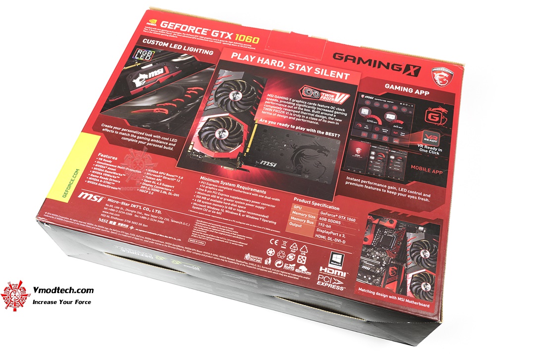 ตัวกล่องของ MSI GeForce GTX 1060 GAMING X นั้นออกแบบมาด้วยโทนสีแดงจัด เหมาะกับสาวกเกมส์มากๆ