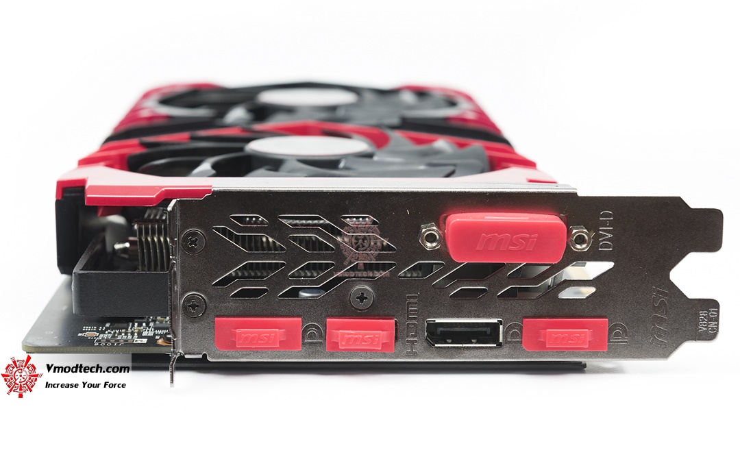 อินตอร์เฟสด้านหลังมีอยู่ 5ช่องคือ 1 X DVI , 1 x HDMI , 3 x DisplayPort DisplayPort 1.2 certified, DP 1.3/1.4 Ready