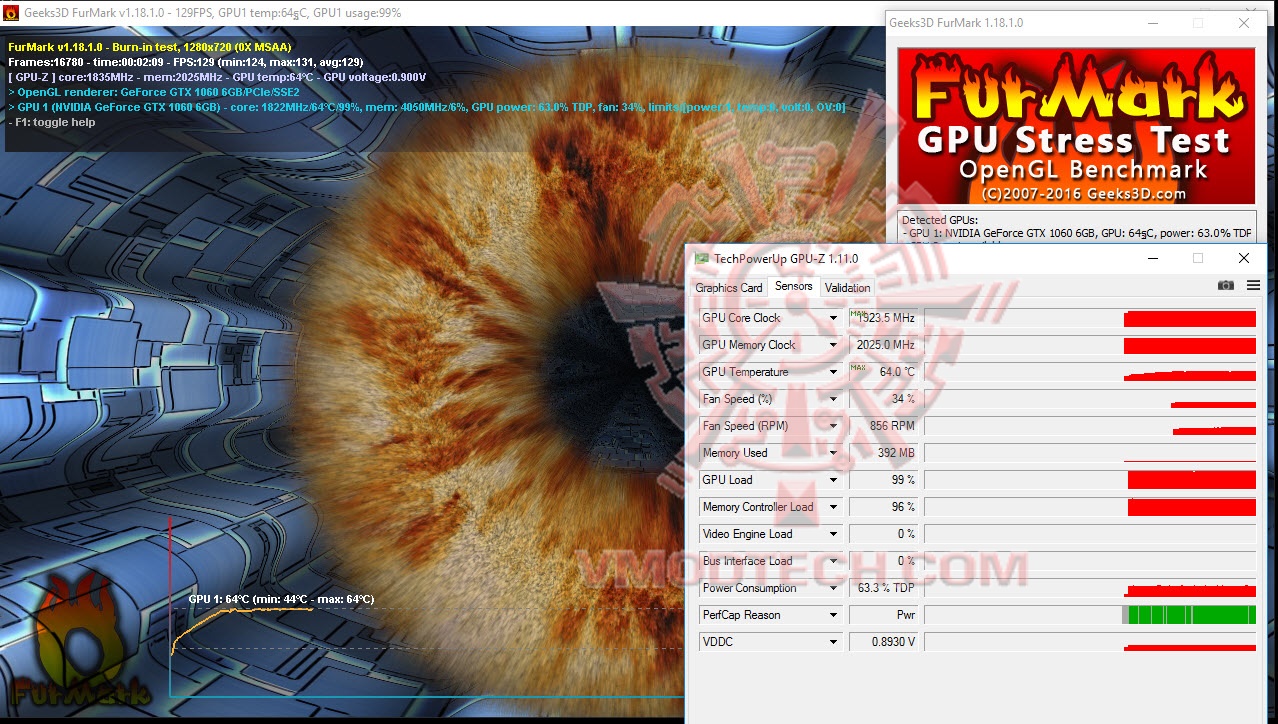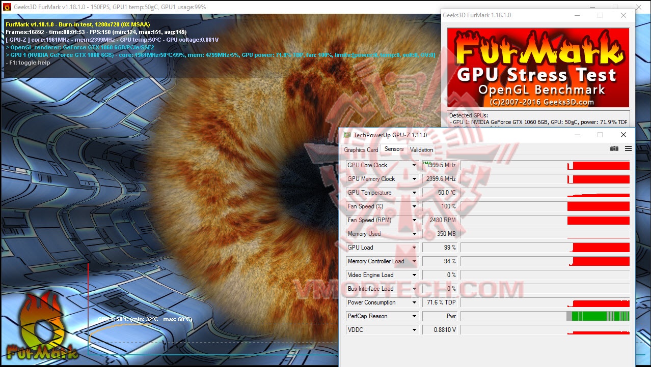 MSI GeForce GTX 1060 GAMING X @ 1595/2027/1810 MHz Core/Mem/Boost
