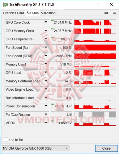 ทดลองโอเวอร์คล๊อกการ์ดก็สามารถพามันไปได้อีกค่อนข้างเยอะที่ 1754/2401/1969 Core/Mem/Boost และเมื่อบู๊สสูงสุดนั้น ความเร็วจะขึ้นไปสุดที่ประมาณ 2164 MHz เลยครับ