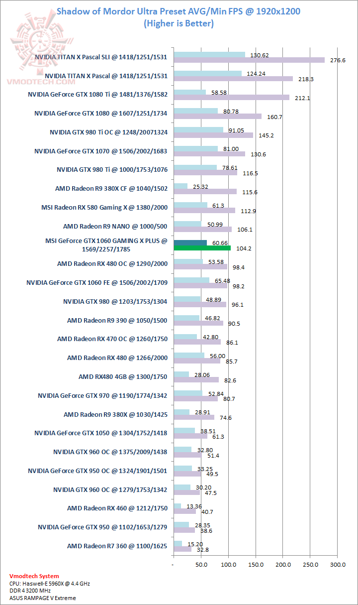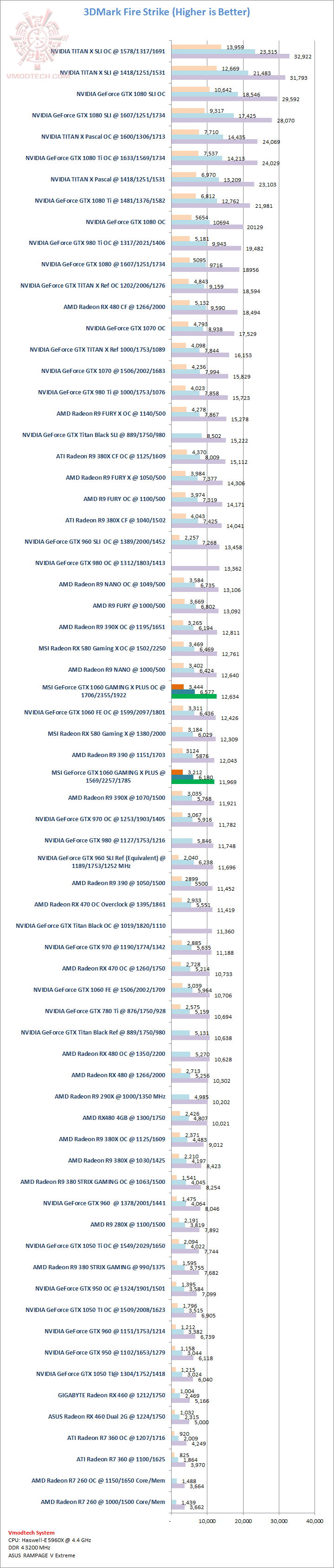 .สำหรับกราฟฟิกการ์ด MSI GeForce GTX 1060 GAMING X PLUS 6GB ที่ได้ทำการทดสอบไปแล้วนั้นถือว่าเป็นการพัฒนาต่อยอดจากกราฟฟิกการ์ดที่ได้ถูกวางจำหน่ายมากกว่าหนึ่งปีแล้วนะครับ แน่นอนว่าความสามารถของตัว GPU นั้นก็สามารถเล่นเกมส์ดังๆในปัจจุบันนี้ได้อย่างลื่นไหลบนความละเอียด Full HD ที่เป็นที่นิยมในปัจจุบัน นอกเหนือจากความแรงแล้ว มันยังสามารถโอเวอร์คล๊อกขึ้นไปได้มากถึง 1706/2355/1922 MHz Core/Mem/Boost โดยที่ความร้อนนั้นแทบไม่ใช่ประเด็นเลยด้วยการปรับรอบพัดลมไปสุดๆ เสียงรบกวนนั้นก็เช่นกันครับ ด้วยชุดระบายความร้อน TWIN FROZR VI ที่เคยได้รับรางวัลมาแล้วจะช่วยยกระดับความเย็นของกราฟฟิกการ์ดด้วยลม TORX Fan 2.0 นั้นเป็นเทคโนโลยีรุ่นที่สองของเทคโนโลยี MSI TORX ที่มีสิทธิบัตรซึ่งจะสร้างแรงลมได้มากกว่า 22% เพื่อให้สมรรถนะที่สูงกว่าและช่วยลดเสียงรบกวนได้ดีกว่า มันได้ถูกต่อเชื่อมกับฮีทซิ้งค์ขนาดเขื่องที่ทำมาจากท่อทองแดงสี่เหลี่ยมจัตุรัสหนา 8 มิลลิเมตรที่ด้านล่างเพื่อส่งเสริมการส่งผ่านความร้อนจากแผ่นนิคเกิลผสมทองแดงและเมื่อรวมเข้ากับซิลิโคน Thermal Compound X นั้น ผลจึงทำให้ขุมพลัง Polaris นั้นคงความเย็นได้ดียิ่งกว่า
