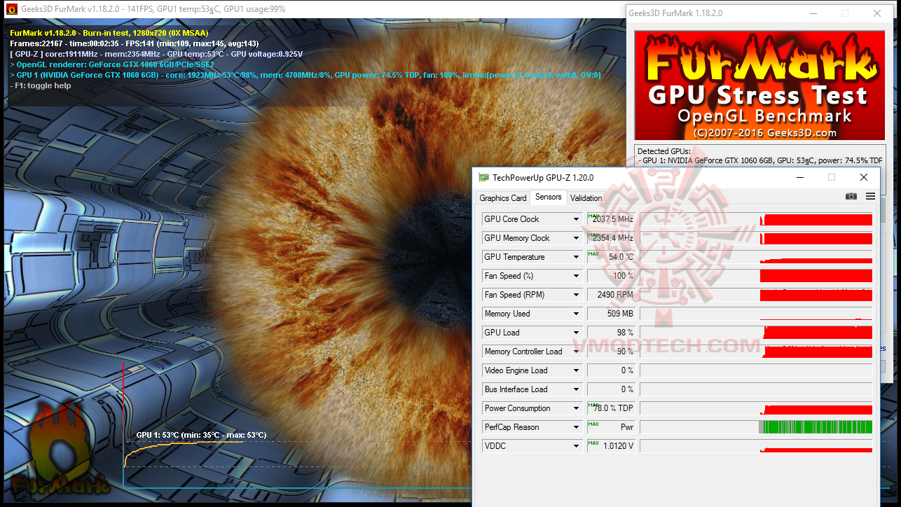 หลังจากที่ได้ลอง Overclock แล้ว ตัวการ์ดสามารถไปได้สูงสุดที่ 1706/2355/1922 MHz ด้วยการเพิ่มไฟไปสุดครับ
