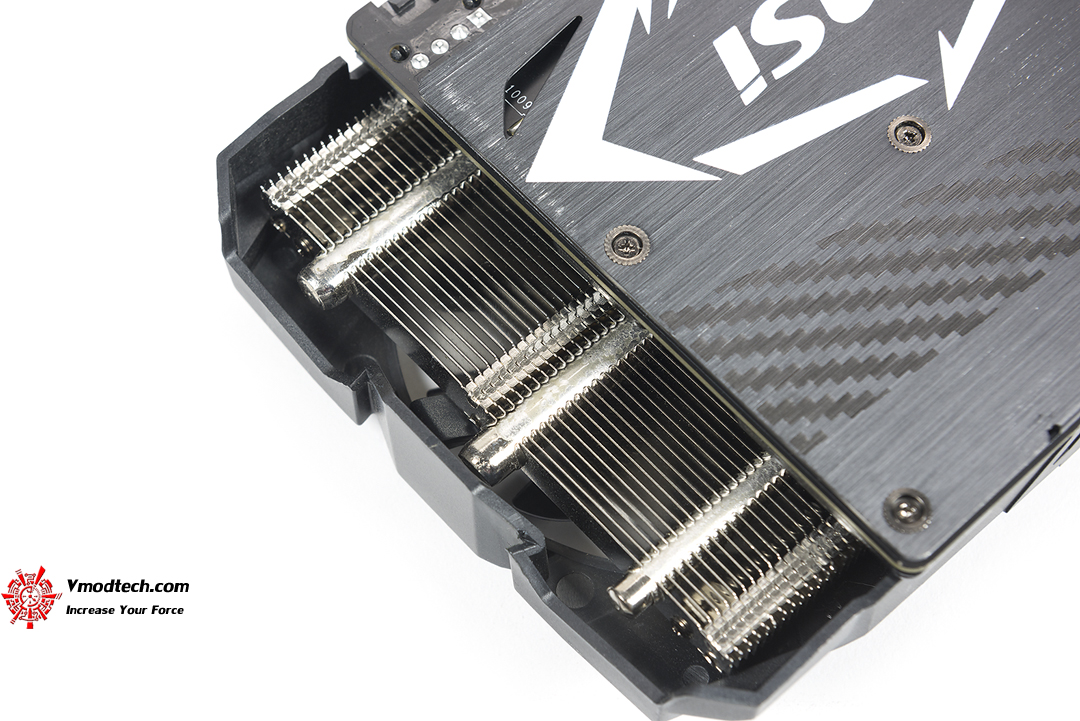 หน้าตาของ MSI GeForce GTX 1070 Ti DUKE นั้นสวยงามทีเดียวด้วยเอกลักษณ์จากพัดลมที่ได้ถูกออกแบบมาเป็นพิเศษบนพิื้นฐานของชุดระบายความร้อน TriFrozr ชุดระบายความร้อนมีขนาดยาวกว่าปกติและยาวกว่าตัว PCB ฝาครอบที่เห็นนั้นเป็นพลาสติกขึ้นรูปมาแต่แข็งแต่เบา มันทนการบิดได้ดีพอควร
