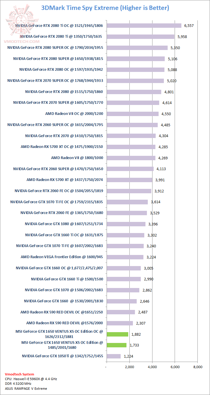 MSI GeForce GTX 1650 VENTUS XS OC Edition OC @ 1626/2312/1881 MHz Core/Mem/Boost