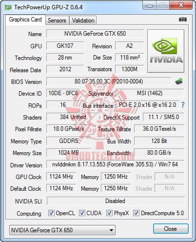 MSI GeForce GTX 650 POWER EDITION from GPUZ