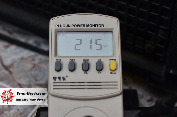 หลังจากโอเวอร์คล๊อกแล้ว อัตราการเรียกใช้ไฟจากเต้ารับก็ไม่ต่างจากเดิมครัที่ประมาณ 294-295 วัตต์
