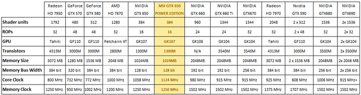 ด้วยโครงสร้างสถาปัตยกรรม Kepler นั้นทำให้ GeForce GTX 680 เป็นการ์ดที่เร็วที่สุด สำหรับ NVIDIA GeForce GTX 650 ก็เช่นเดียวกัน มันได้ถูกออกแบบมารองรับการเล่นเกมส์ที่ความละเอียดระดับ 1080p พร้อมๆกับการตั้งค่าความละเอียดระดับกลางและแน่นอนว่ารองรับ FXAA เป็นอย่างดี GTX 650 นั้นมี SMX 2 หน่วยที่มีคูด้าคอร์จำนวน 384 คอร์และ 32 เท็กเจอร์ยูนิต เมมโมรี่คอนโทรลแบบ 64 บิทสองชุดรวมเป็น 128 บิท มีให้เลือกทั้งแบบความจุ 1 กิ๊กกาไบท์และ 2 กิ๊กกาไบท์