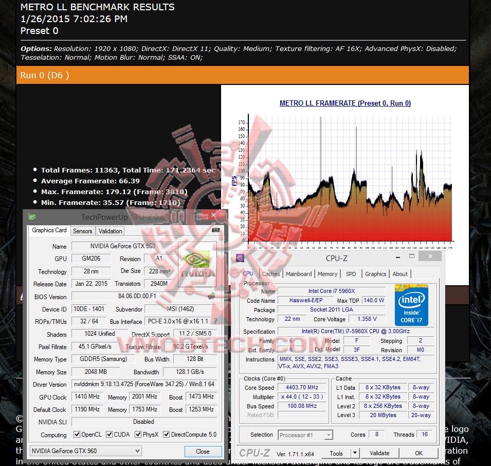 MSI GeForce GTX 960 Gaming Twin FROZR V @ 1190/1753/1253 MHz Core/Mem/Boost