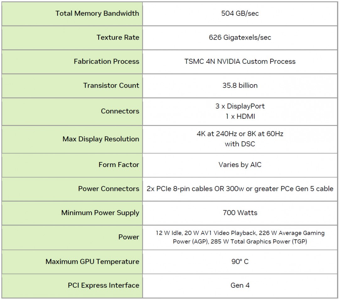 - Tensor Core Generation 4th ช่วยให้เราได้ใช้และแปลงเทคโนโลยี AI เพื่อการเล่นเกมส์ซึ่งจะประกอบไปด้วย NVIDIA DLSS และความสามารถทวีคูณบน NVIDIA DLSS 3