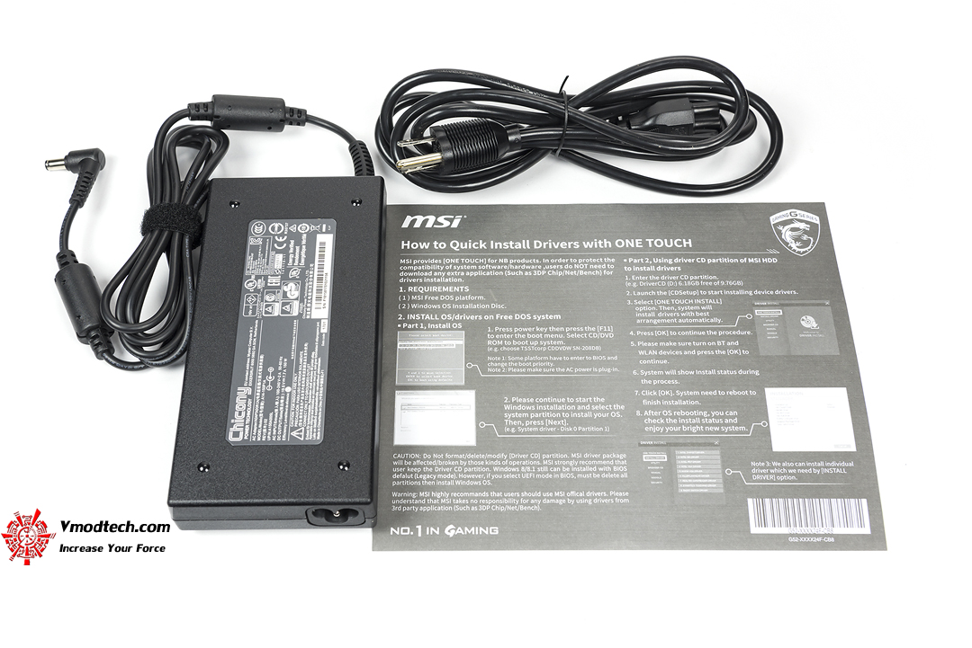 มีคู่มือการติดตั้งพื้นฐานพร้อมกับ Adapter แปลงไฟจากไฟบ้านเป็นดีซีเพื่อป้อนให้กับโน๊ตบุ๊ค