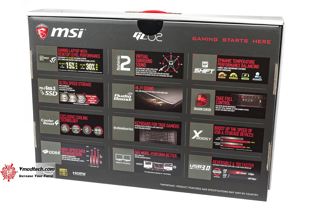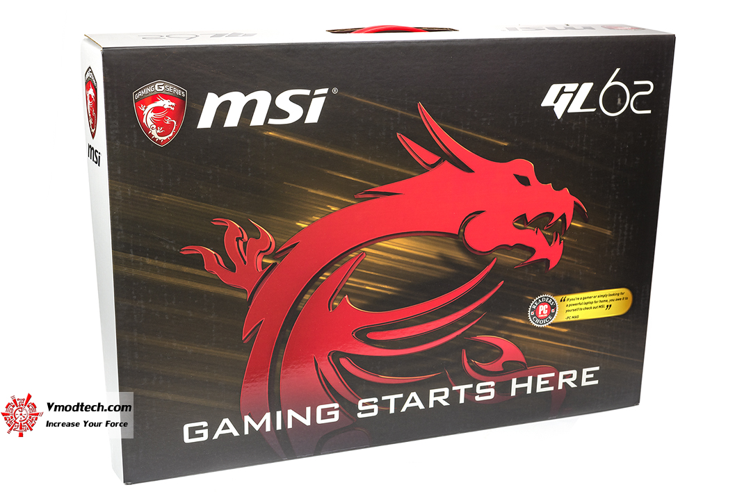 หน้าตาเต็มๆของกล่องบรรจุ MSI GL62M 7RDX ครับ ซึ่งรายละเอียดที่สำคัญๆของตัวโน๊ตบุ๊คนั้นได้มีแสดงไว้ที่ด้านหลังกล่องด้วย