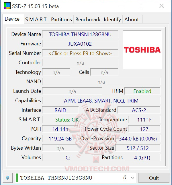 ในส่วนของการเก็บข้อมูลนั้น MSI GS40 4QE Phantom นั้นให้มาด้วยกันสองชุดครับนั่นก็คือ SSD ขนาด 128GB จาก Toshiba และ HDD 1TB จาก Toshiba เช่นกันครับ เราไปชมผลทดสอบประสิทธิภาพของทั้งคู่เลยครับ
