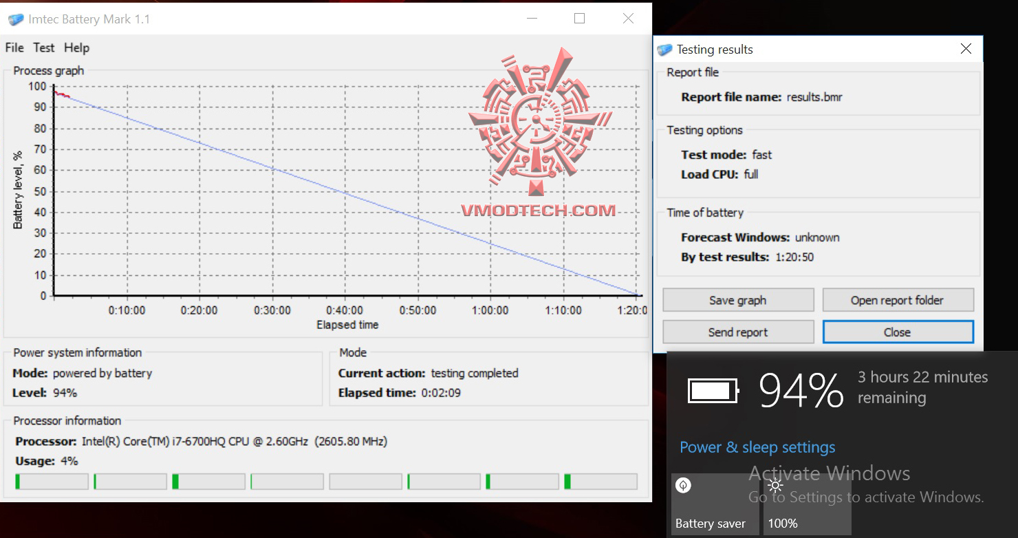ในส่วนของการทำสอบแบตเตอรรี่ 94เปอร์เซ็นนี่ใช้ได้นาน 3ชั่วโมง 22นาทีกันเลยทีเดียวครับ