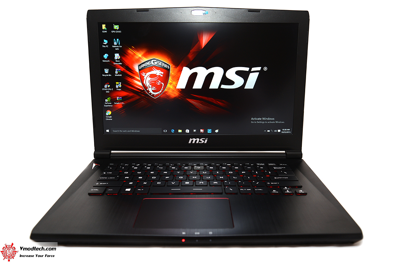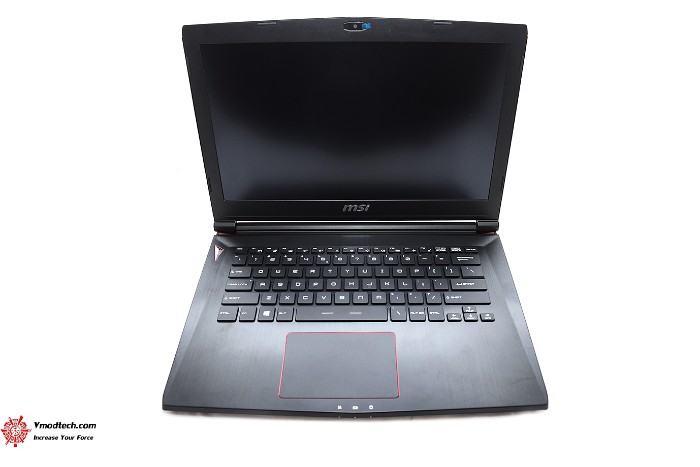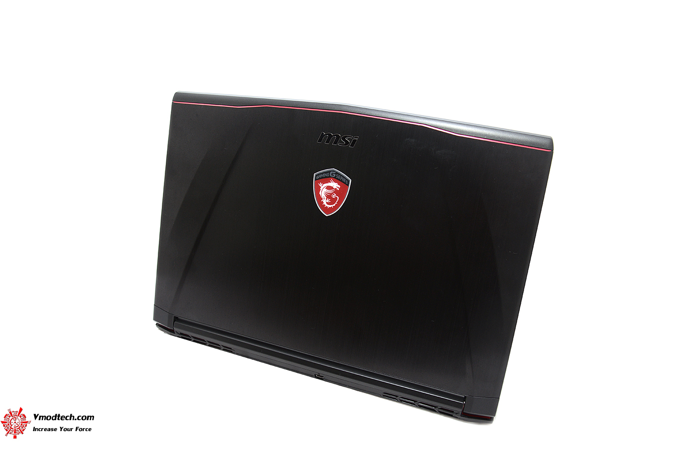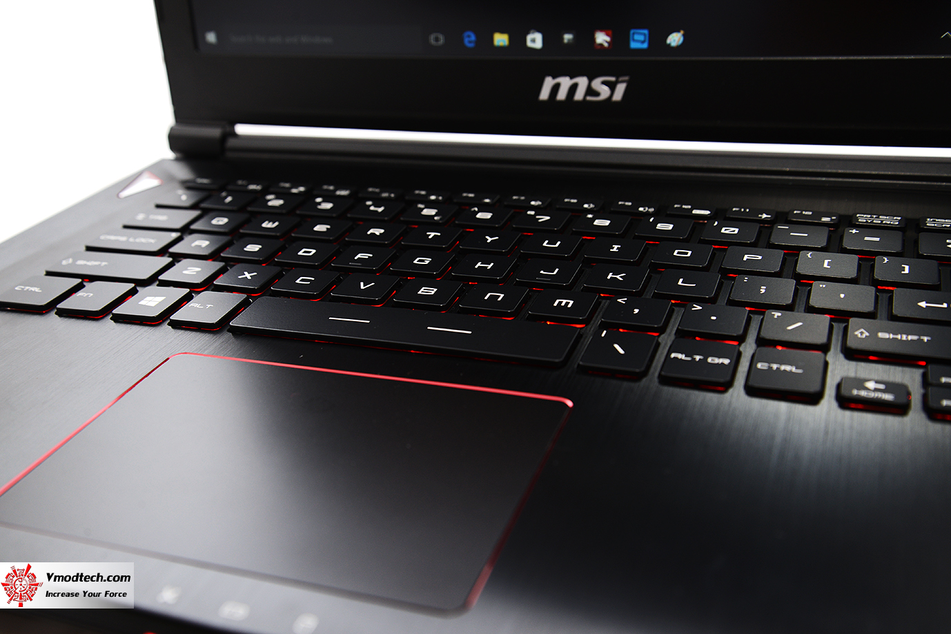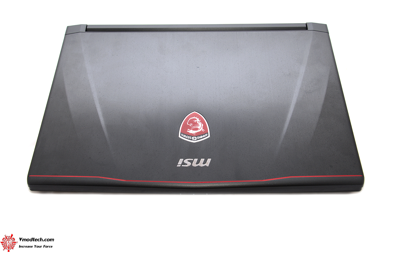 ด้านหน้ามีตรา MSI และโลโก้ MSI GAMING สวยงาม โดยด้านบนจะมีเส้นสีแดงคาดแนวขวางเป็นเอกลักษณ์สวยงามเลยทีเดียว