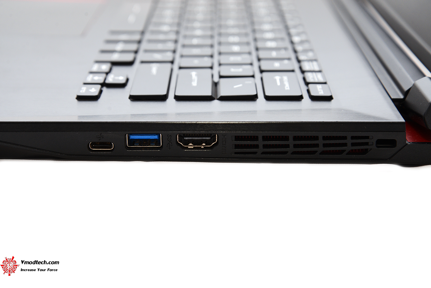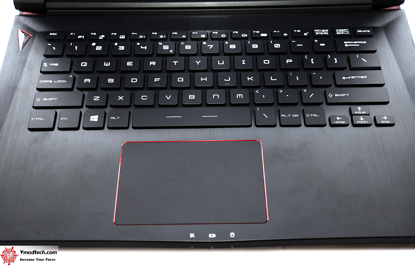 คีย์บอร์ดจะมีสีแดงเป็น backlighting (red) แสดงผลเป็นสีแดงข้างใต้แป้นคีย์บอร์ดครับ