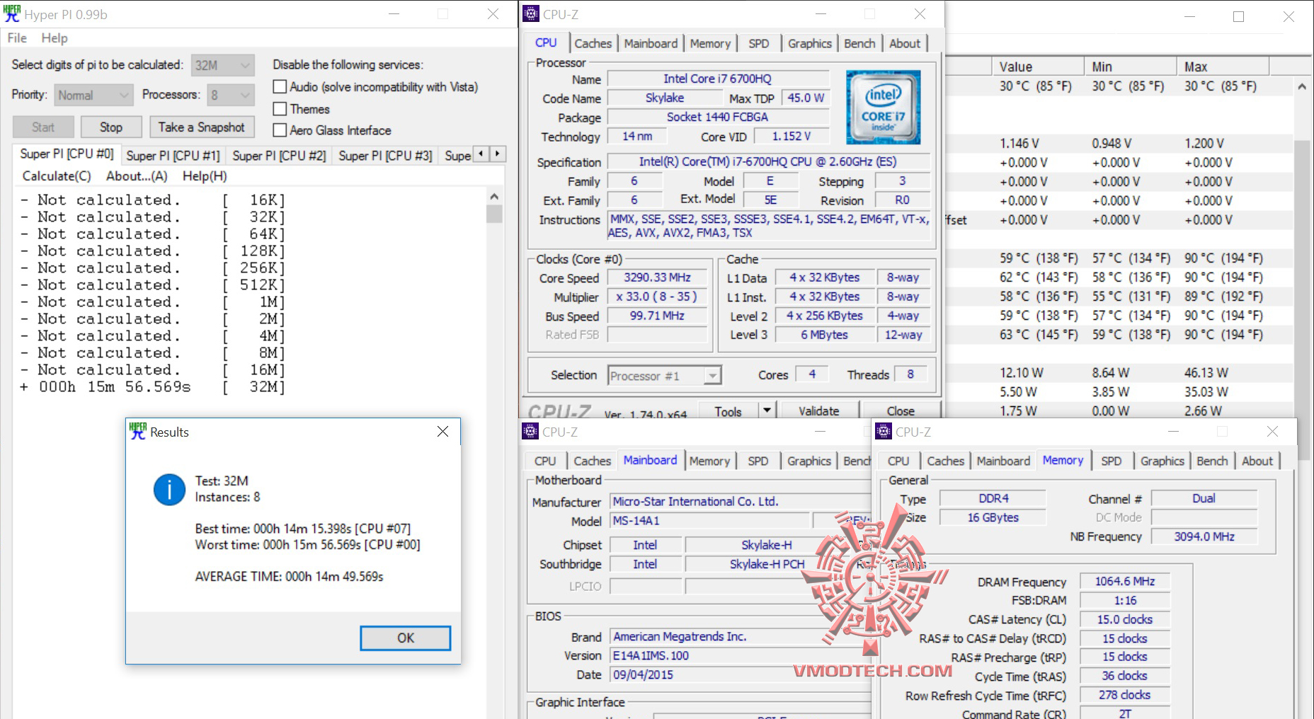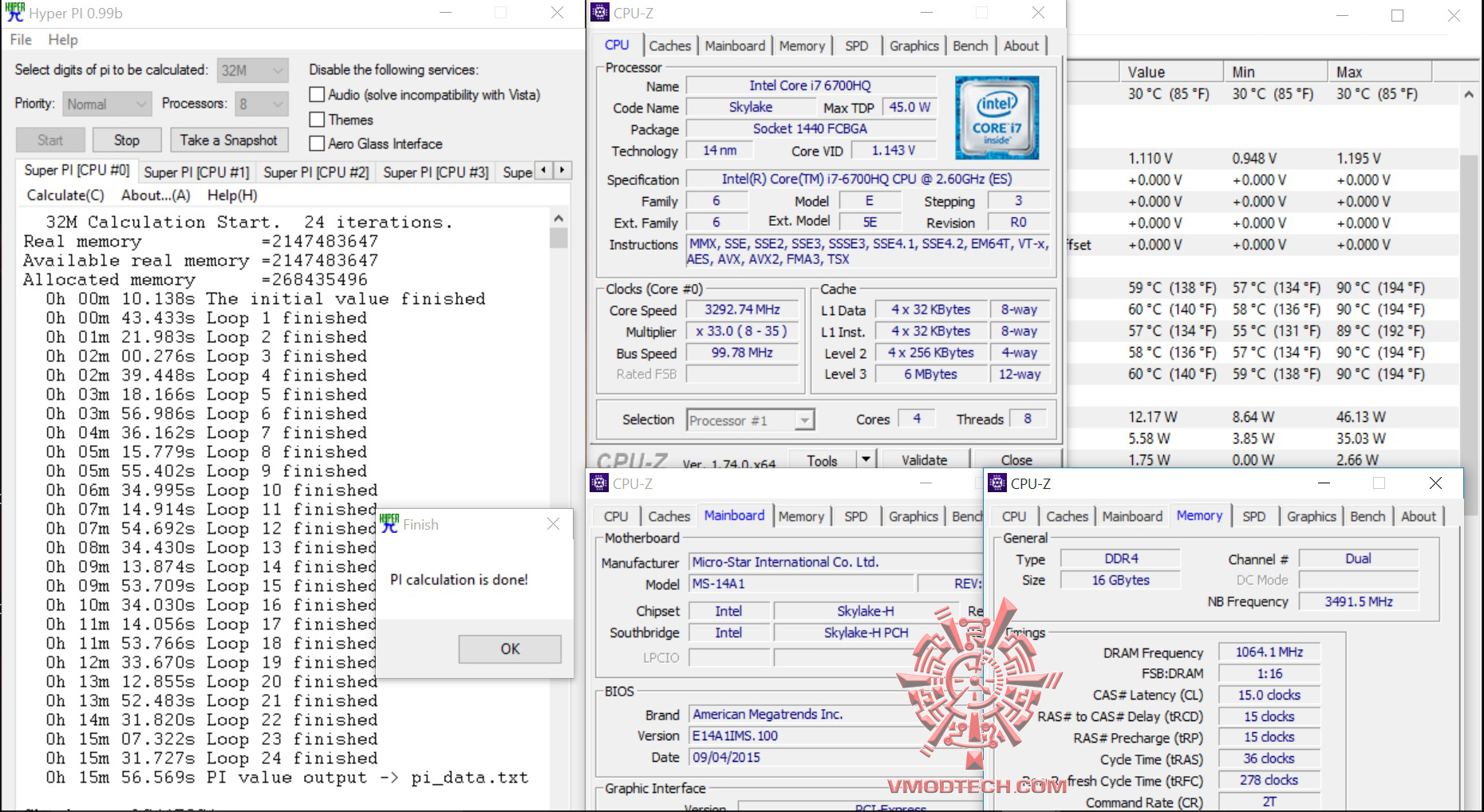 สำหรับ ชุดทดสอบ SuperPI1MBจบไปที่ 11.696วินาที , 32MB จบไป10นาที 19.1วินาที ส่วน HyperPI 32MB ก็ผ่านหมดแรงแบบนิ่งๆใช้งานกันได้จริงอย่างมีเสถียรภาพครับ เฉลี่ยราวๆ 15นาทีกว่าๆ ทั้ง 8เทรด