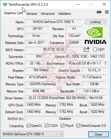 กราฟฟิกการ์ดนั้นติดตั้ง NVIDIA GeForce GTX 1050 Ti มาให้ มันมีแรมมาให้ตัว 4 กิ๊กกะไบท์ครับ