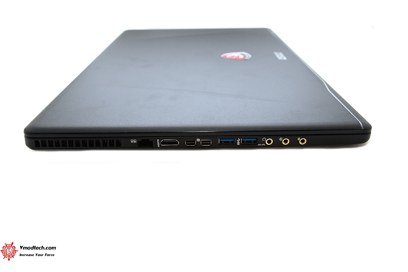 ช่อง เชื่อมต่อด้านข้างประกอบด้วย 2x USB 3.1 Type-A , USB 3.0 port X2 , Card Reader SD (XC/HC) , Mini DisplayPort x 2(v1.2) , HDMI x1(v1.4) , Mic-in/Headphone-out , LAN Killer E2400 Gigabit Ethernet with Killer Shield , Wireless LAN Killer Wireless-AC 1535 , Bluetooth 4.1 , Sound by Dynaudio with woofer