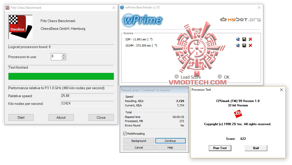 wPrime2.09 , CPUMark99 WINRAR 5.0 & Fritz Chess Benchmark