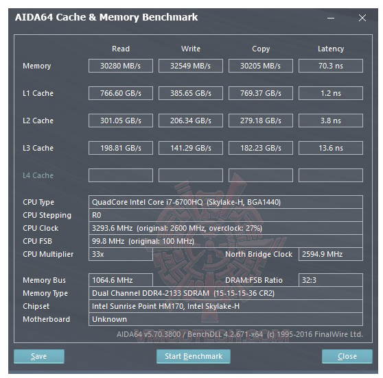 AIDA64 MEM ก็แรงตามมาตรฐานเลยครับ ทั้งแบรนดวิธต่างๆการอ่านเขียนอยู่ที่ 30280MB/s และ 32549MB/s กับบัส 2133Mhz DDR4 16GB ทำได้ดีจริงๆครับทั้งการอ่านและเขียน