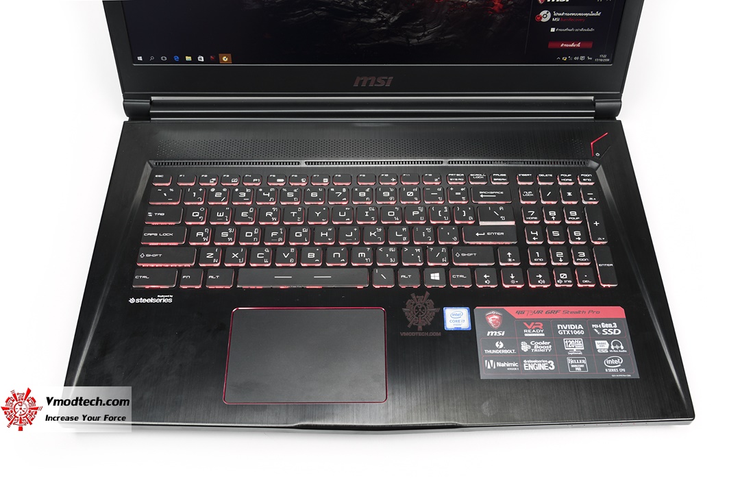หน้าตาของ MSI GS73VR 6RF Stealth Pro แบบเต็มๆครับ ตัวถังนั้นมีขนาดใหญ่แต่บางมาก จอแสดงผลมีขนาด 17.3 นิ้ว พาแนลเป็น IPS ครับ