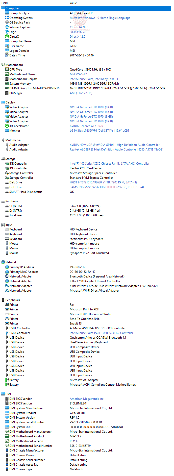 CPU ที่ใช้จะเป็นตัวยอดนิยมครับคือ Intel Core i7 7700HQ Kaby lake 4 Core 8 Thread มีแรมแบบ DDR4 บัส 2400 MHz มาให้ 1 แถวขนาด 16 กิ๊กกะไบท์ทำงานแบบ Single Channel